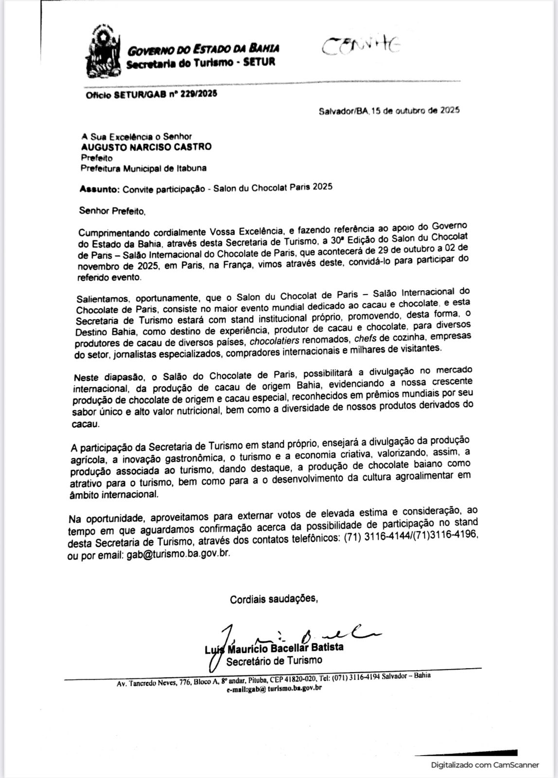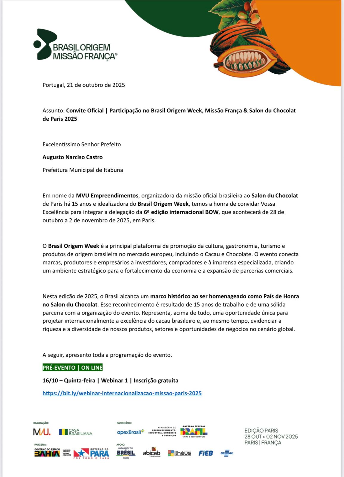 A participação do prefeito Augusto Castro reforça o protagonismo de Itabuna e do Sul da Bahia, região tradicionalmente cacaueira, na cadeia produtiva do cacau e do chocolate de origem. Além disso, amplia o diálogo em torno do turismo, da economia criativa e da atração de investimentos estratégicos para a região.