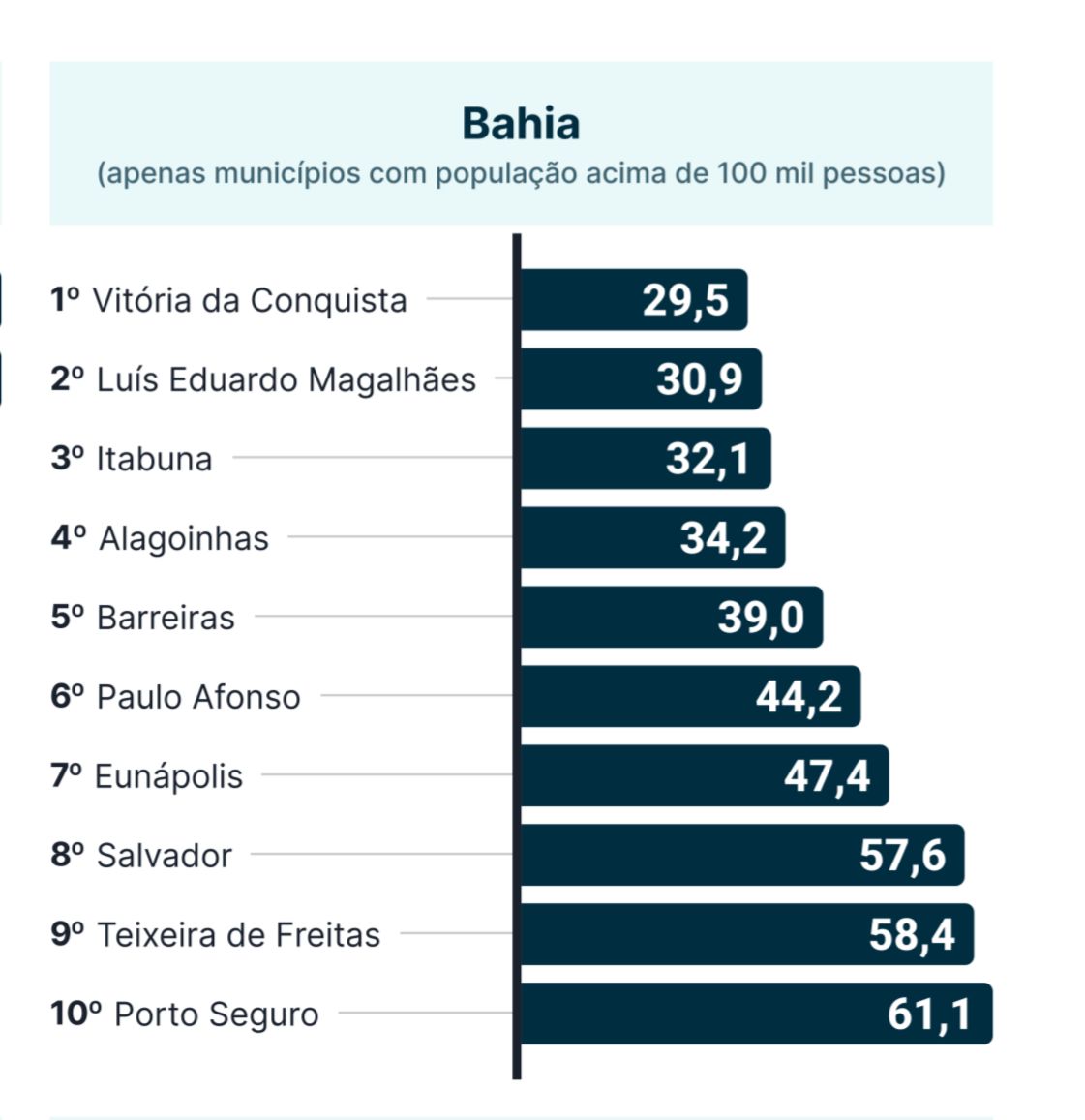 Itabuna passou a ocupar posição de destaque no cenário estadual ao ser classificada como a 3ª cidade mais segura da Bahia entre municípios com mais de 100 mil habitantes, conforme o Anuário Cidades Mais Seguras do Brasil 2025, divulgado pela plataforma MySide.
