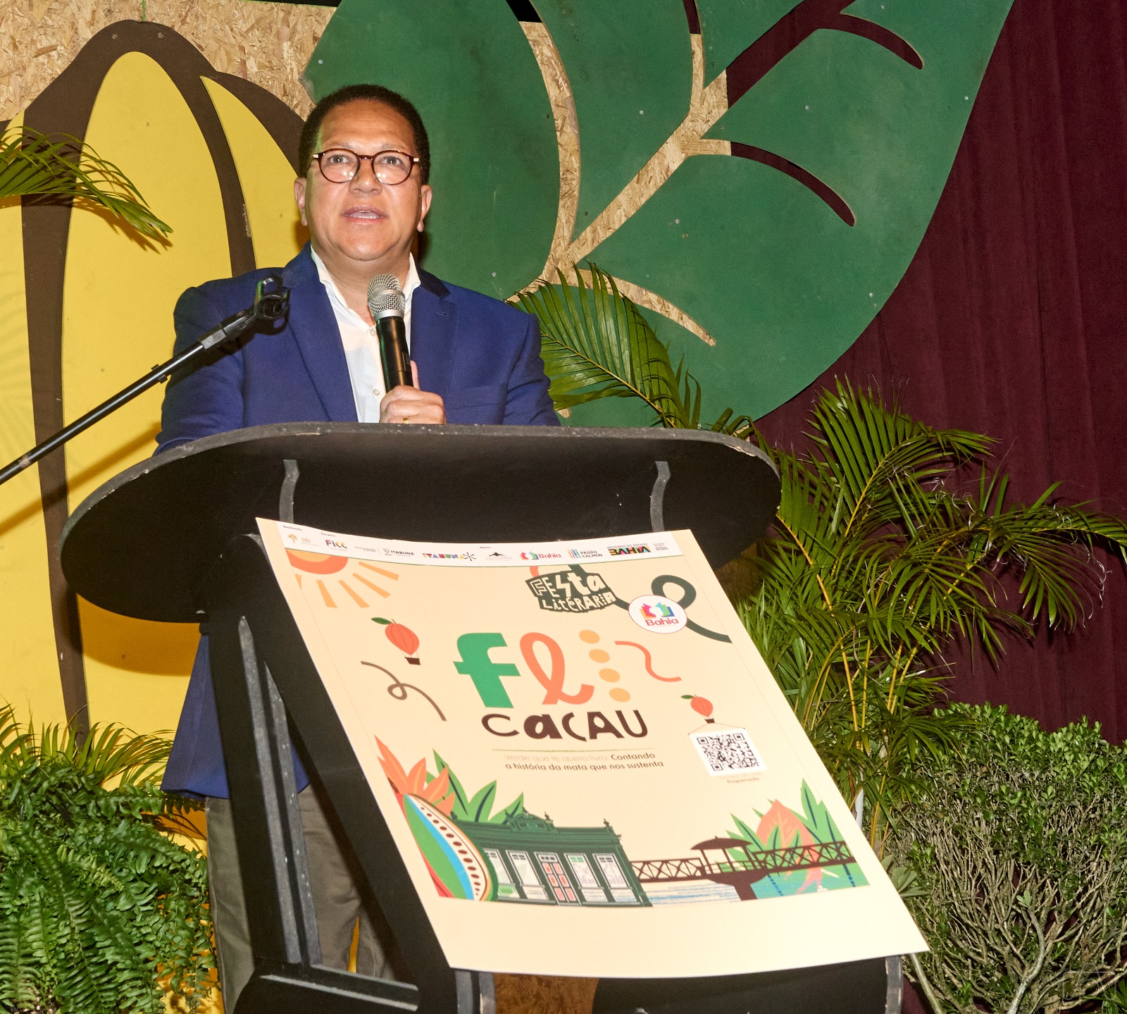“Este é um festival literário que nasce em Itabuna, mas é territorial como o cacau que tem cheiro, sabor e histórias, memórias e acolhimento pelo que gera. Então, é grande alegria estar aqui neste auditório, porque leitura, livro, cultura e memória é o que nos acalenta e dá identidade, o que diz o que estamos fazendo. Portanto, a intencionalidade da política pública do Governo do Estado em fomentar feiras e atividades artístico-culturais nos mais diversos territórios”, discursou.