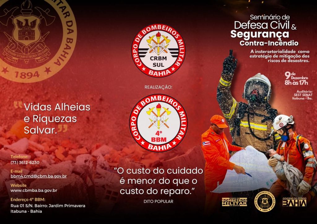O evento será encerrado às 17 horas após a palestra do coordenador da Defesa Civil de Itabuna. Mais informações: (73) 3612-6230 ou bbm4.cmd@cbm.ba.gov.br