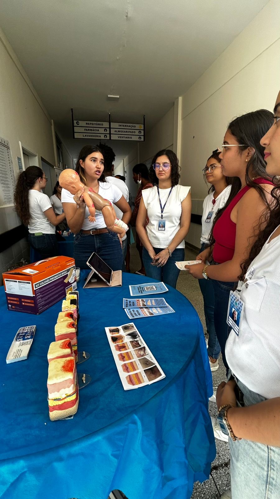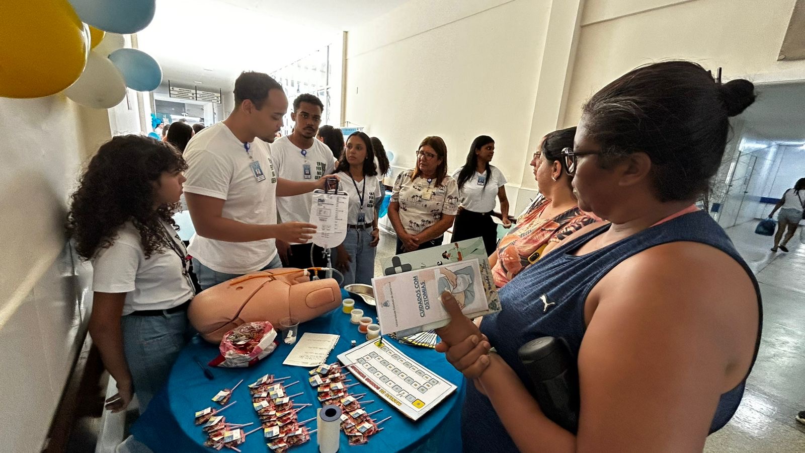 Sob a supervisão das preceptoras Paula Soriano, Rejane Barreto, Maria do Rosário Barreto e Mariane Costa, os estudantes esclareceram dúvidas sobre a realização de curativos, manejo do cateter vesical, uso de sondas enteral e gástrica, prevenção de lesões por pressão, administração de medicamentos e cuidados com ostomias.