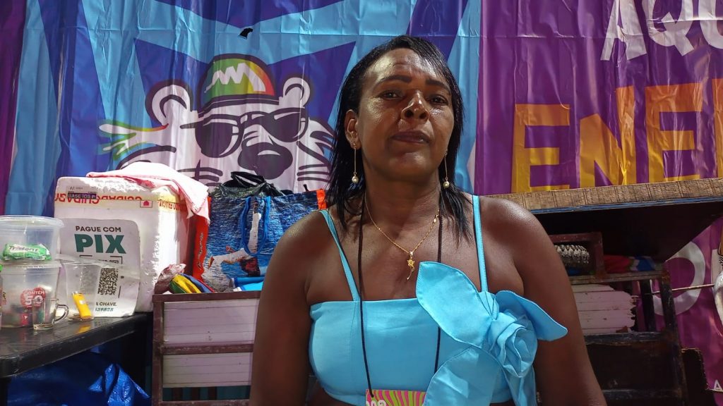 Moradora do Bairro Maria Pinheiro e desempregada por questões de saúde, Rosiene Ramos de Jesus, 51 anos, credenciou-se como ambulante e investiu R$ 700 em bebidas para vender na festa. Com o bom resultado das vendas na primeira noite do evento, que teve início na quinta-feira, dia 22, e termina neste domingo, dia 25, garantiu estoque até o final da folia. ”