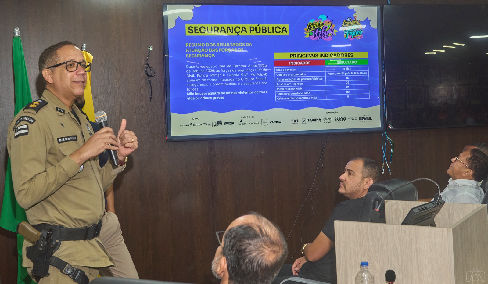 “O Carnaval Antecipado de Itabuna teve baixíssimos índices de violência no Circuito Sabará e nenhum crime contra a vida”, comentou o comandante do 15º BPM, tenente-coronel Robson Farias, ao apresentar o relatório setorial da força juntamente com o secretário municipal de Segurança e Ordem Pública (SESOP), Humberto Mattos, na audiência pública realizada pela Prefeitura na noite de quarta-feira, dia 28, no Plenário Raymundo Lima, da Câmara de Vereadores.