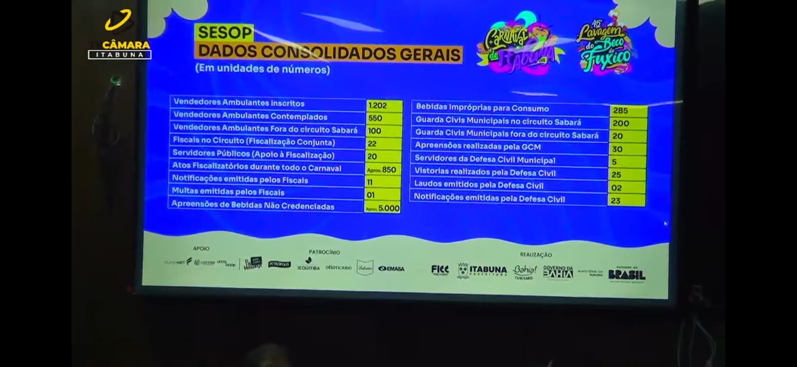 O secretário municipal da Segurança e Ordem Pública, Humberto Mattos, disse que a Guarda Civil Municipal cuida do patrimônio público e da vida das pessoas. “Neste ano, tivemos um serviço de videomonitoramento de acordo com o planejamento estratégico para operar num evento como este. Tivemos 1.200 ambulantes inscritos, com 550 contemplados, sendo 40 isopor no circuito e 100 fora, contemplados 650 famílias”, explicou, acrescentando que a preocupação era em relação à bebidas adulteradas diante dos casos recentes de metanol na Bahia.