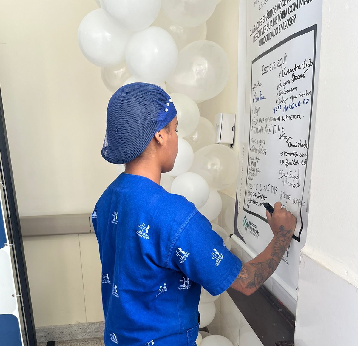 No espaço, os profissionais foram convidados a registrar hábitos, atitudes e escolhas que desejam adotar ao longo do novo ano, com foco na saúde mental, no bem-estar e no equilíbrio emocional. A proposta foi incentivar o autocuidado em um ambiente de escuta e acolhimento.