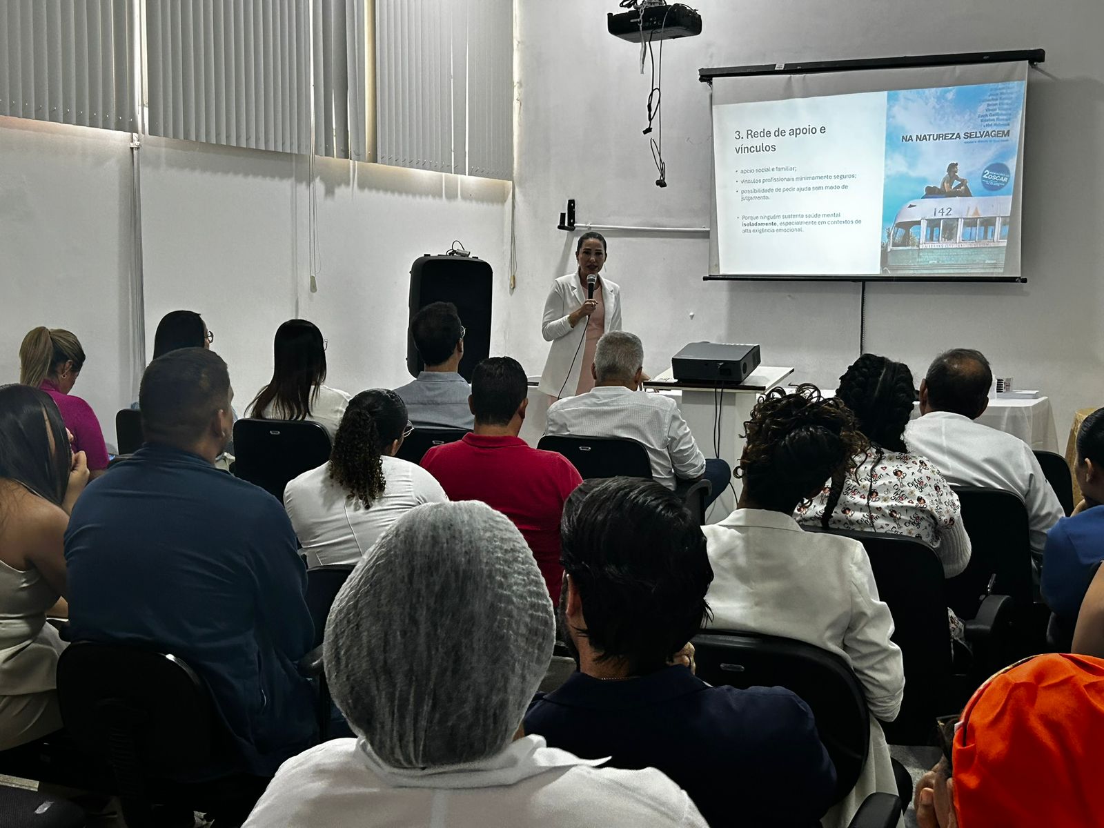 Em seguida, a psicóloga Raquel Rocha ministrou a palestra “Saúde Mental no Ambiente Hospitalar: Cuidando de Quem Cuida”, encerrando o encontro com a dinâmica reflexiva “O que me sustenta?”.