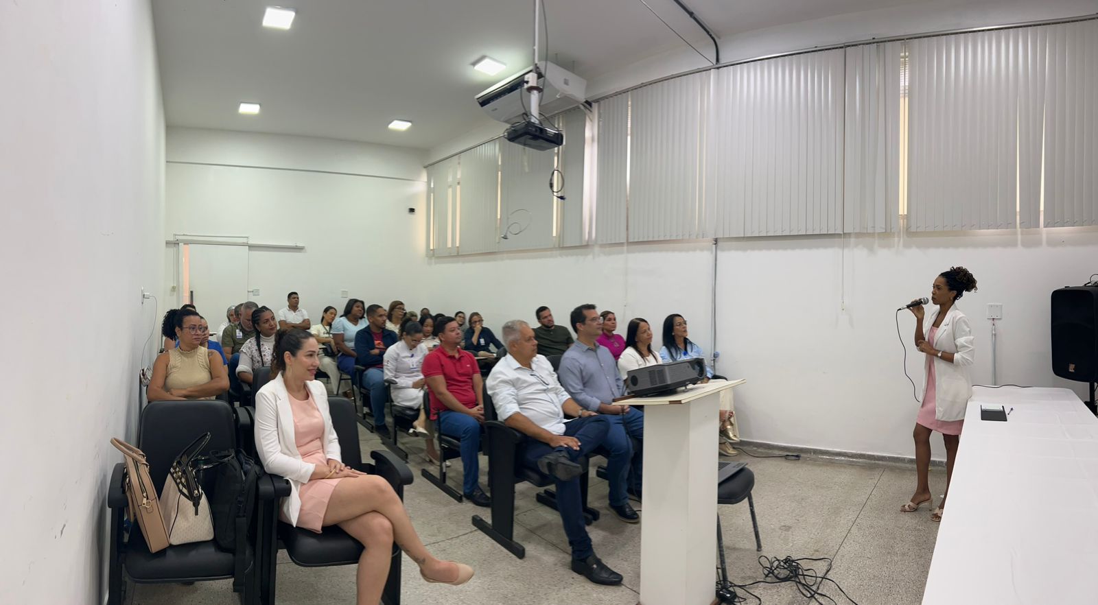 A programação continuou na manhã da quarta-feira passada, dia 29, no auditório da unidade, com a realização de duas palestras. A abertura foi conduzida pela psicóloga Rosineide Carvalho, colaboradora do HBLEM, que abordou o tema “Pilares da Saúde Mental”.