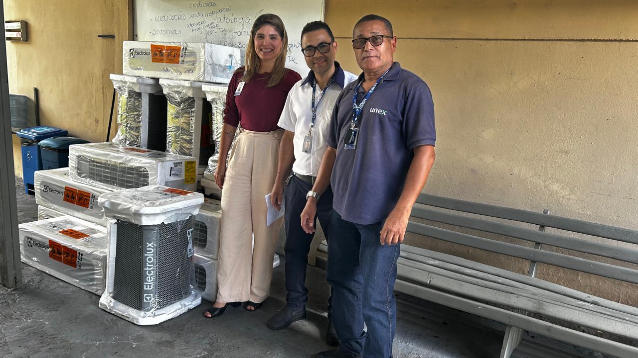 O Hospital de Base Luís Eduardo Magalhães (HBLEM), administrado pela Fundação de Atenção à Saúde de Itabuna (FASI), recebeu contrapartida de sete aparelhos de ar-condicionado do Centro Universitário UNEX Itabuna, recentemente.