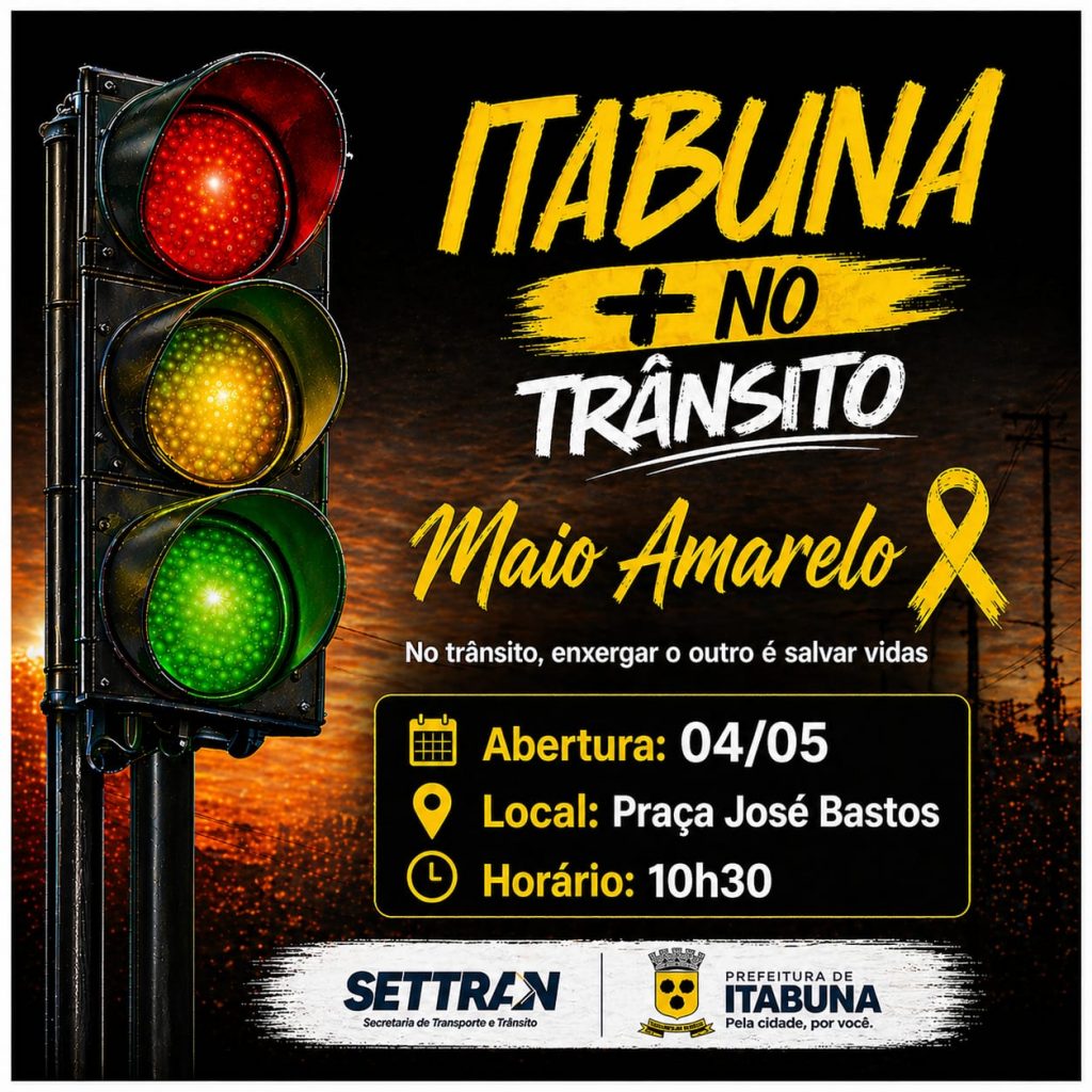 A Prefeitura de Itabuna, através da Secretaria de Transportes e Trânsito (SETTRAN), e órgãos parceiros inicia na segunda-feira, dia 4, às 10h30min, na Praça José Bastos, Centro, a Campanha Itabuna Mais no Trânsito como parte da Campanha Maio Amarelo 2026 visando proteger vidas, que neste ano tem como tema oficial “No trânsito, enxergar o outro é salvar vidas”.
